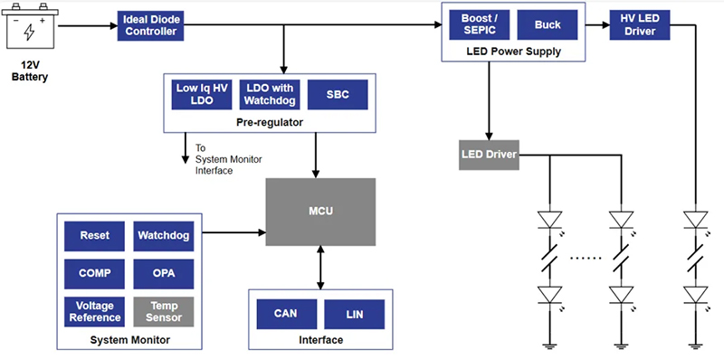 车灯调光电路:为PWM调光提供稳定电压基准